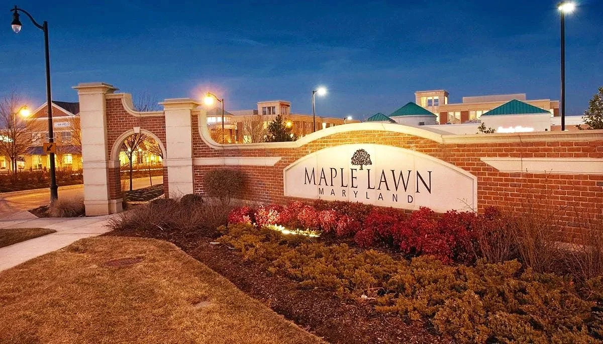 The version of Maple Lawn people know now started taking shape when Greenebaum & Rose began the planning process in 1996. From the start, the goal was not just to drop more houses onto open land. The idea was to build a traditional neighborhood development, something more walkable, more connected, and more like an old small town than a typical subdivision. Homes, shops, offices, sidewalks, and open space were all meant to work together instead of feeling scattered.